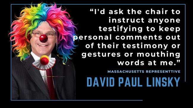 On October 31, 2025, a Massachusetts joint committee met to ramrod 40+ bills through the process. Representative David Paul Linsky couldn’t handle the heat and had some boo boo feels.