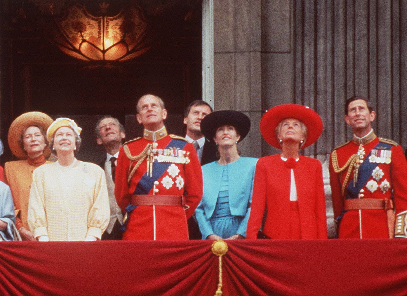 LONDON, UNITED KINGDOM – JUNE 15, 1991: Queen Elizabeth II, Prince Philip,lady Penny Romsey (standing Next To Prince Philip) Duchess Of Kent And Prince Charles At Trooping The Colour (Photo by Tim Graham Photo Library via Getty Images)